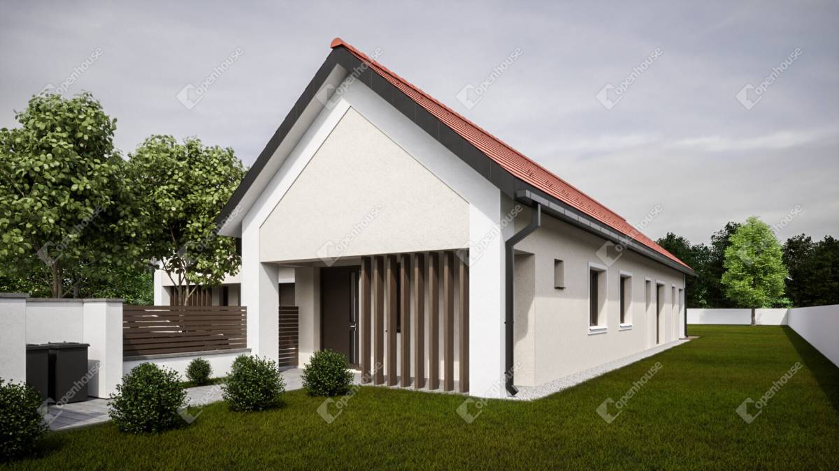 Lakótér: 108 m² telek 811 m². Az ingatlan kiváló minőségű anyagokból a mai modern kor elvárásainak megfelelően kerül kivitelezésre. Külsó és belső teherhordó tégla falak, 10 cm-es belső válaszfalak, hagyományos tetőszerkezet betoncserepekkel, homlokzati hőszigetelő rendszer 15 cm vastag, polisztirol táblákkal, vékony vakolattal, vevő által választott burkolatok.