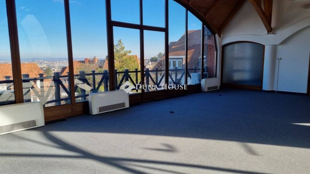 Kiadó panorámás iroda a XII. kerületben!Budapest XII. kerületének közkedvelt, zöldövezeti részén, a Meredek utcában kínálunk bérlésre egy 175 m²-es, legfelső emeleti irodahelyiséget egy rendezett, négy szintes irodaházban.Az ingatlan frissen felújított, klimatizált, tágas és világos terekkel rendelkezik. A nagyméretű, panorámás ablakoknak köszönhetően gyönyörű városi kilátás biztosítja az exkluzív, inspiráló munkakörnyezetet.Helyiségek: 3 különálló irodahelyiség (2 tárgyaló és 1 nagy iroda) önálló, felszerelt konyha 2 mosdóA praktikus elrendezés ideálissá teszi az ingatlant irodai munkavégzésre, ügyfélfogadásra vagy akár egy kisebb vállalkozás központjának kialakítására.Bérleti feltételek: Bérleti díj: 717 000 Ft / hó + ÁFA A bérleti díj 2 parkolóhelyet tartalmaz További ingyenes parkolási lehetőség az utcában Kaució: 3 havi bérleti díj Minimum bérlési idő: 12 hónap Az ingatlan azonnal birtokba vehetőA környék csendes és rendezett, ugyanakkor kiváló közlekedési adottságokkal rendelkezik. A BAH csomópont és a belváros is gyorsan elérhető a 8E buszjárattal. Ez az iroda tökéletes választás mindazok számára, akik presztízsértékű, igényes munkakörnyezetet keresnek nyugodt, zöld környezetben, mégis a város közvetlen közelében.További információért és megtekintésért forduljon hozzám bizalommal!