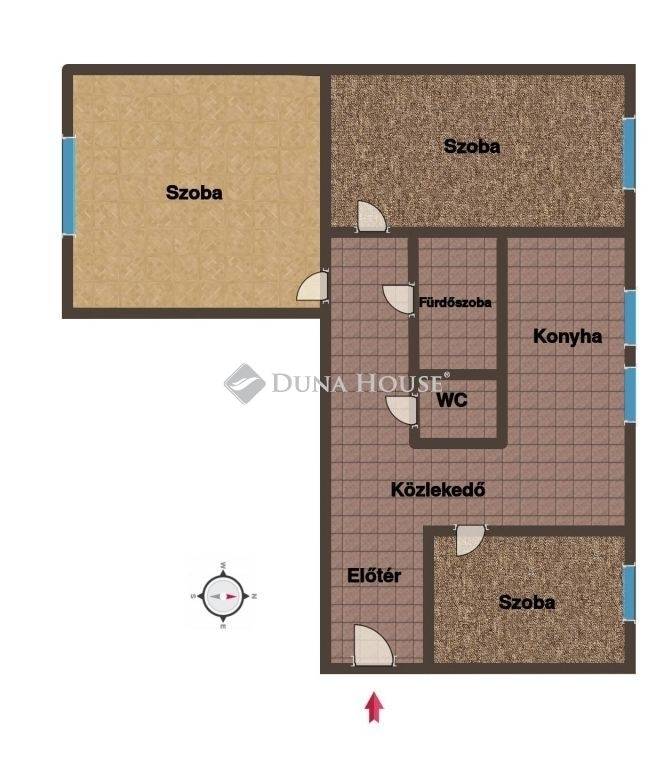 Az elrendezés praktikus, a szobák külön nyílnak, a lakás jól berendezhető, élhető terekkel. A fűtés távhő, a nyílászárók új műanyag ablakok, ami stabil rezsit és kiszámítható fenntartást jelent.