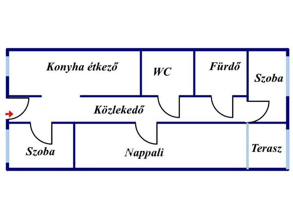 Az 54 m?-es alapterület praktikus elosztású, a három külön nyíló szoba kényelmes életteret biztosít akár családok számára is, de befektetésnek is ideális választás lehet. A földszinti elhelyezkedés különösen előnyös idősebbeknek, kisgyermekes családoknak, illetve azoknak, akik szeretnék elkerülni a lépcsőzést.