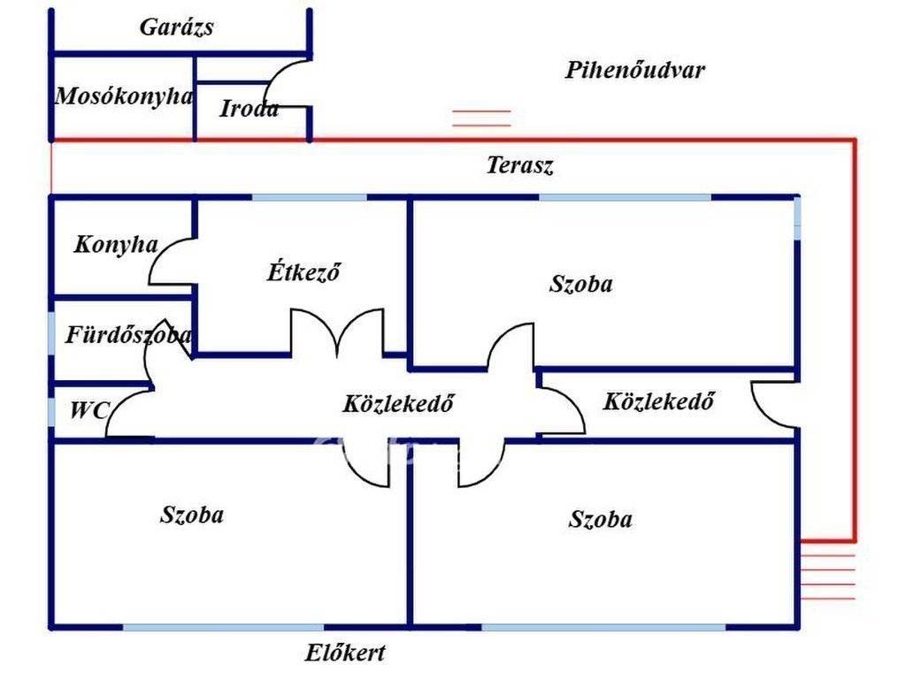 A lakótér praktikus és élhető elrendezésű: három különnyíló hálószoba, konyha, külön étkező, kamra, fürdőszoba zuhanyzóval és sarokkáddal is felszerelt, a WC külön helyiségben kapott helyet, körbefutó terasz ideális helyszín a pihenésre, a ház alatt pedig egy kisebb pince is rendelkezésre áll.