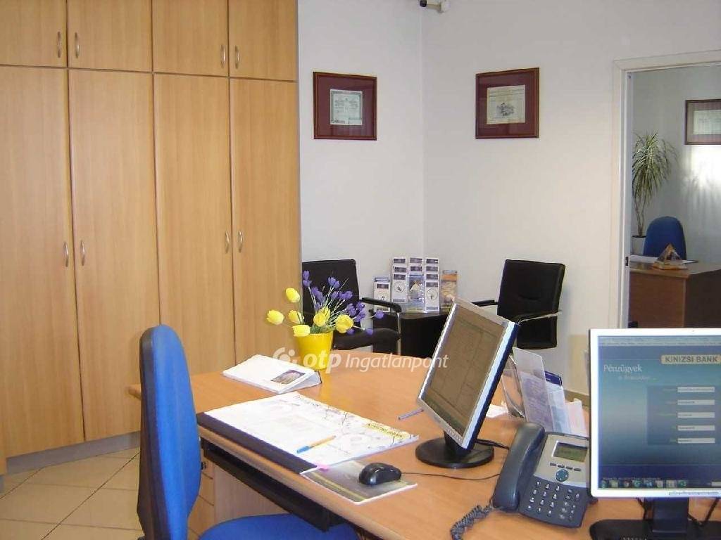 KIadó Nemesvámos központjában igényesen kialakított 50 m2-es iroda. Nagy ügyféltér, szoba, konyha, wc, raktár elrendezésű.