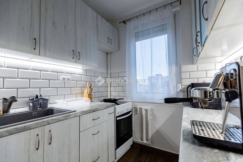 A magas emeleti elhelyezkedésnek köszönhetően a lakás világos, az erkély és a franciaerkély pedig tovább növeli a térérzetet.