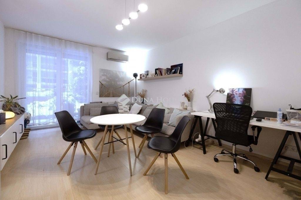 Otthon Start Programmal kompatibilis, modern, 2 szobás lakás nagy terasszal és parkolóval a János Pál Pápa tér közelében!Fiatal tulajdonostól eladó egy kiváló állapotú, modern hangulatú kétszobás lakás a János Pál Pápa tér közvetlen közelében, csendes utcában, mégis kiváló közlekedéssel. Az ingatlan egy 2008-ban átadott, liftes, téglaépítésű társasház első emeletén található. A lakás jellemzői :Tulajdoni lapon 76 nm (lakás + terasz),A lakótér mérete 55 m2,Észak-nyugati tájolás, belső udvarra néző ablakok és terasz, Zöldövezettel egybekötött, nagy terasz,2 külön nyíló szoba + előtér + közlekedő + konyha + WC + fürdőszoba, Modern elrendezés, ötletesen megtervezett terek,Méretre gyártott, beépített gardróbszekrények,Jól felszerelt, modern konyha,Fürdőkáddal felszerelt fürdőszoba,Házközponti fűtés, egyedi mérőkkel,Hűtőfűtő klímák két helyiségben,Parkolás:A lakáshoz tartozik egy teremgarázs-beálló az épületben, ami 8,00 M Ft ellenében kötelezően megvásárolandó a lakás mellé. A lakás 82,00 M Ft-os kikiáltási ára nem tartalmazza garázs ellenértékét.Egyéb előnyök:Rendszeresen karbantartott, otthonos érzést kínáló lakás,Igényesen összeállított, ízléses berendezés,Tehermentes, 1/1-es tulajdon,Rövid határidőn belül költözhető,Ár-érték arányban kiemelkedően jó ajánlat a piacon.Otthon Start