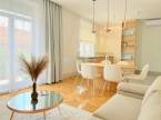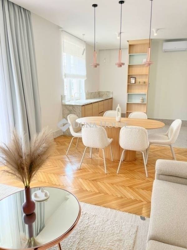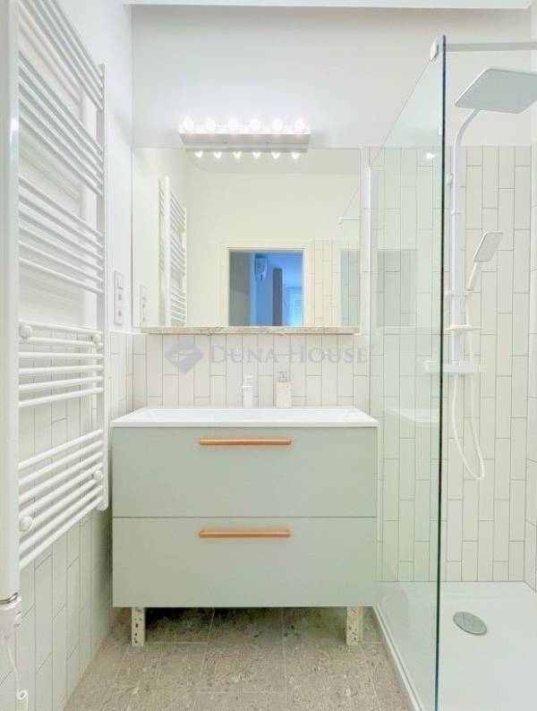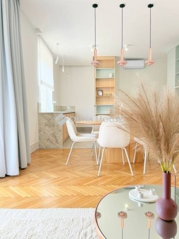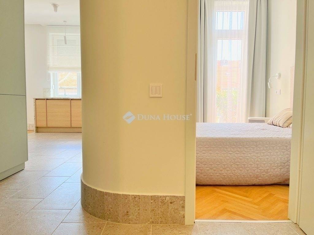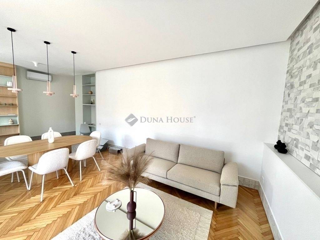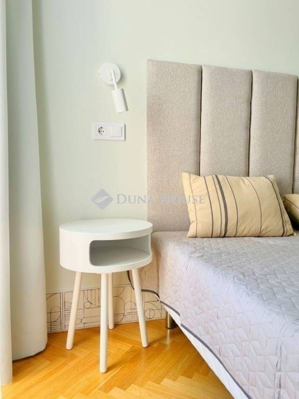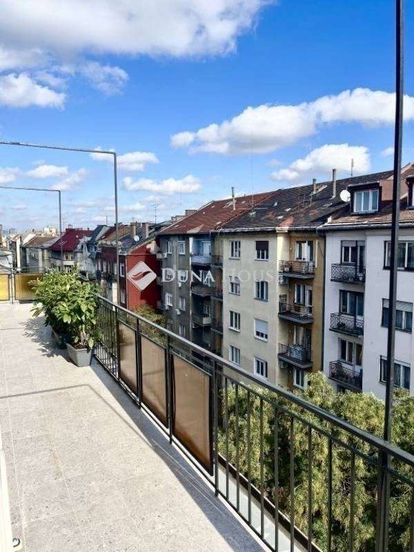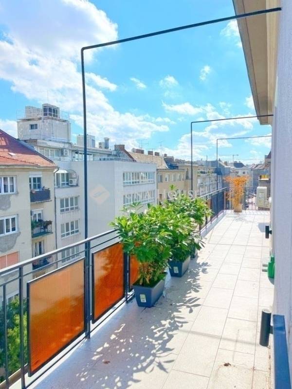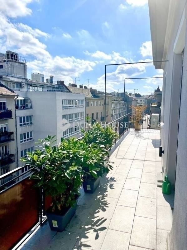 Újlipótvárosban, a Raoul Wallenberg utcában eladó egy 2024-ben teljeskörűen felújított, hatodik emeleti, 67 m²-es lakás 24 m²-es tetőterasszal a Phönix-házban.A lakás belsőépítész tervei alapján került felújításra és átalakításra. A nappali és a konyha-étkező egy tágas légtérben található, dupla erkélyajtóval a teraszra. A hálószobából szintén van kijárat a teraszra. Külön vendég WC helyiség került kialakításra.Az ingatlan főbb jellemzői: 24 m²-es, dél-keleti fekvésű tetőterasz panorámával; légkondicionálás a nappaliban és a hálószobában; egyedi beépített bútorok; BOSCH konyhai gépek (sütő, főzőlap, beépített mikró, mosogatógép, hűtő fagyasztóval); eredeti fa parketta; magas minőségű burkolatok; felújított és szigetelt tetőterasz; redőnyök; biztonsági bejárati ajtó; padlófűtés a hidegburkolatos helyiségekben.A társasház jó anyagi körülmények között van, jelenleg is folyamatban van a teljes elektromos hálózat felújítása. A lépcsőház és a lift korábban felújításra került.Az ár a teljes berendezést, bútorzatot és a gépeket tartalmazza.