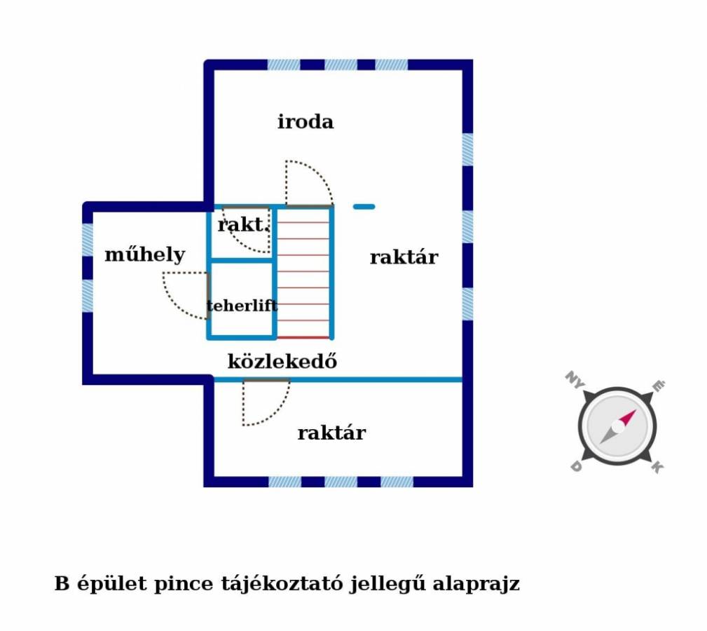 - két szintes, raktárokkal, műhelyekkel, teherlifttel (500 kg), mellékhelyiségekkel, irodával és egy tágas fogadó vendégtérrel