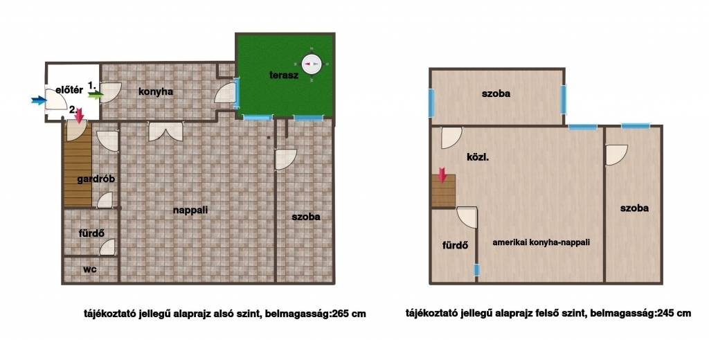 - közös előtérből nyíló 2 szeparált lakás nappali + 2 hálós elosztással