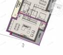 Az épület első emeletén, lakáson belül kétszintes, bruttó 97,16 m2, nettó 88,24 m2 lakóterű, nappali + 2 szobás lakás, 12,44 m2 dupla erkéllyel megvásárolható, mely külön lépcsőházból elérhető ahol nincs lift.