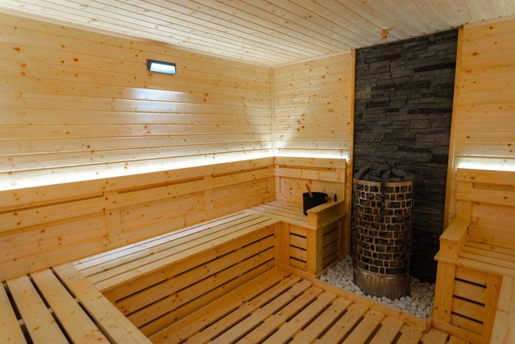 Külön szaunaszint: 9 férőhelyes finn szauna SAWO elektromos kályhával