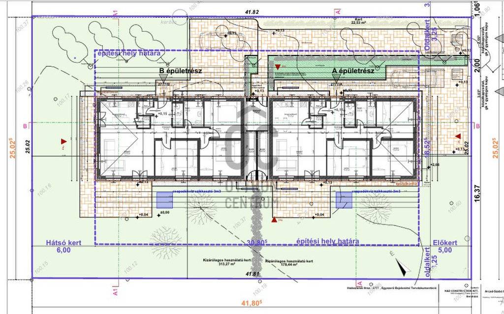 - a házhoz tartozó telek telek kb. 550 (beépítetlen zöldterület/kertrész ebből 313 m2)