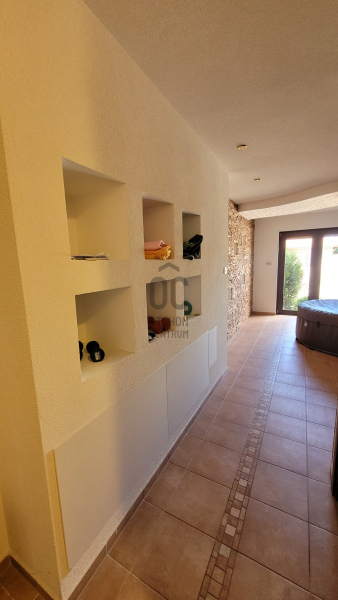 Jelenleg a földszinten helyezkedik el a lakótér, itt található egy nagy nappali, konyha étkezővel, négy különálló szoba, egyik gardrób helyiséggel, 2 fürdőszoba, 2 mellékhelyiség, wellness 3 férőhelyes infra szaunával, és egy hangulatos nagy fedett terasz. Minimális ráfordítással 2 generációssá alakítható ez a szép ház, minden kiállás, illetve feltétel megvan hozzá a szuterén szinten, ahol egy hangulatos borospince is kialakításra került, valamint szabadidő terem, mosókonyha, háztartási helyiség és egyéb tároló helyiségek vannak, nem utolsó sorban egy óriási, 45 nm-es dupla garázs, elektromos kapuval felszerelve.