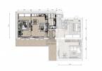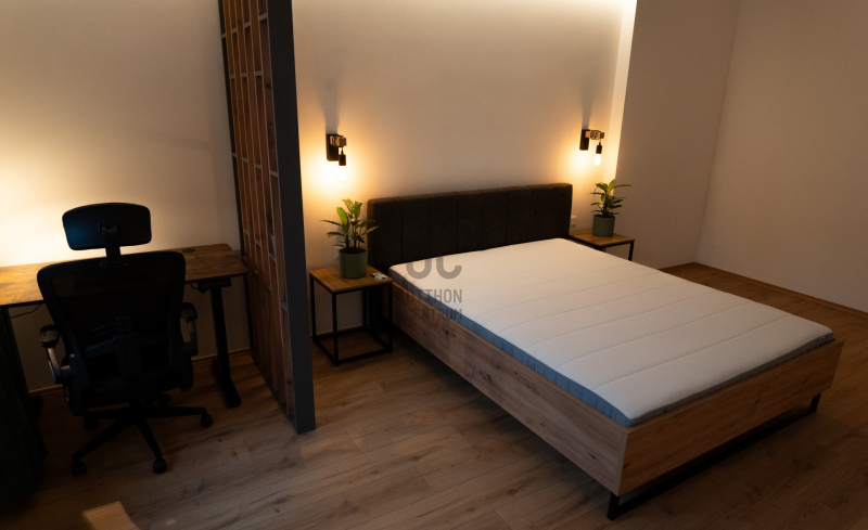 A konyha gépesített (Whirlpool), a lámpák és a beépített bútorok a vételár részét képezik. Ha valaki saját stílust szeretne, bútorozatlanul is kérheti.