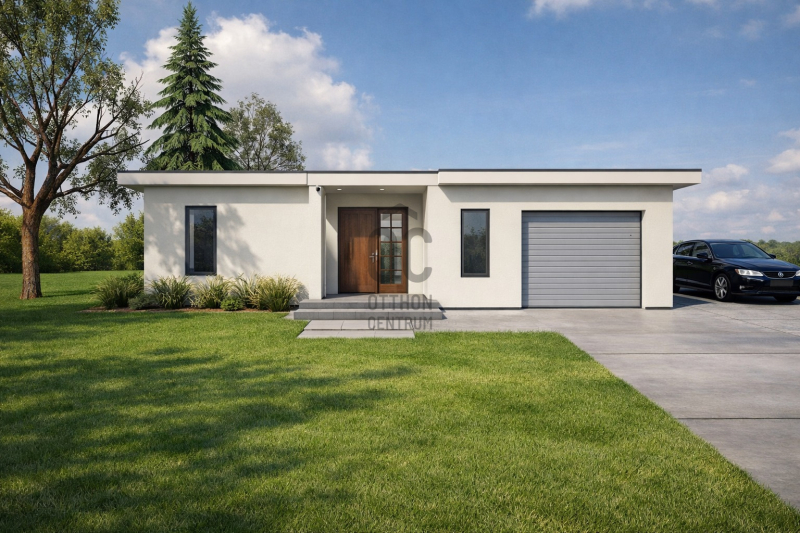 A jelenlegi koncepció egy nettó 125 m²-es, földszintes, önálló családi ház:
