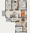 A három szoba a nappaliból nyílik, így kényelmes és jól átlátható elrendezést biztosít.