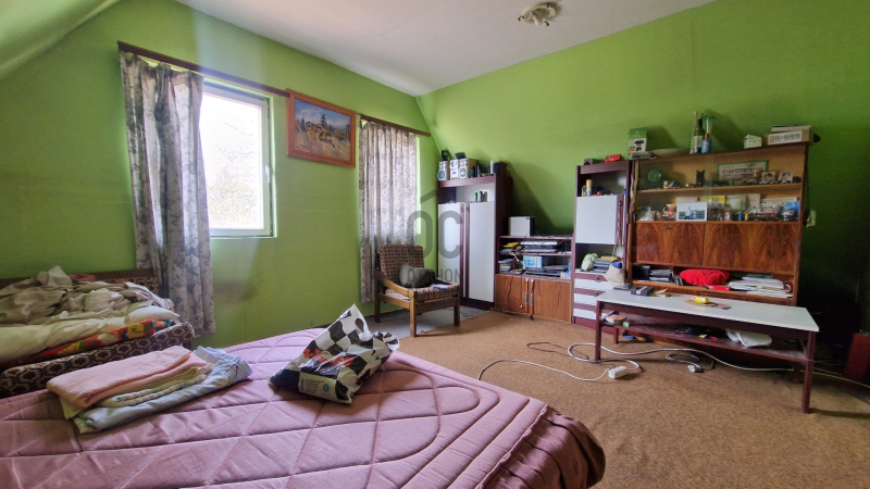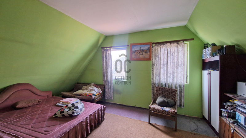 Emeleten nappali/előtérből külön nyíló szoba és fürdőszoba wc-vel van.