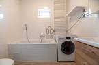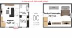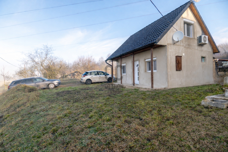 A házba belépve a nappaliba érkezünk, jobbra a konyha és a fürdőszoba található. A bejárati ajtótól balra a lépcsőt találjuk, ha felmegyünk rajta a beépített tetőtérbe érkezünk, ami jelenleg hálószobaként funkcionál.