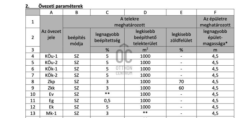 - Övezeti besorolás: Mk1
