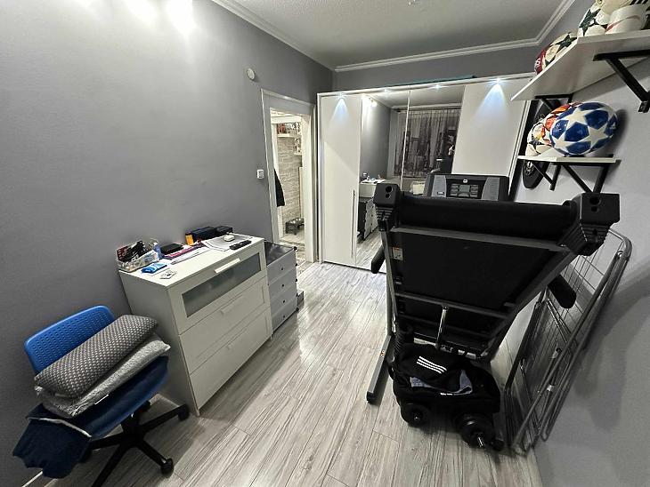 -A lakásban jó állapotú laminált parketta található minden helyiségben kivéve a konyhában, ott használtabb állapotú a parketta.