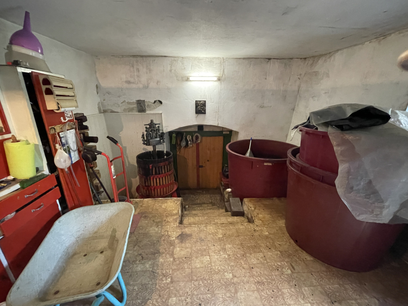 2. Pince-présház: A pincével együtt kb. 80 m²-es, hangulatos gazdasági épület jelenleg a szőlőfeldolgozás és tárolás helyszíne. Az épülethez egy két autó számára is alkalmas garázs kapcsolódik, Hörmann billenőkapuval szerelt.