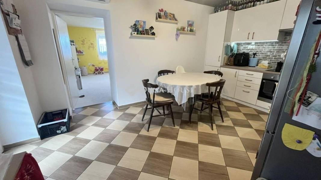 Meggyeskovácsiban eladó egy felújított családi ház- nagy telekkel, garázzsal és kúttal!Eladásra kínálok Szombathelytől szűk fél óra távolságra Meggyeskovácsiban, egy 93 nm-es felújított családi házat. A ház 2000-es évek óta folyamatos felújításon esett át, ebben az időben a tetőt cserélték le, majd a belső tereket 4 éve teljes körűen újratervezték és felújították tulajdonosai. A ház födéme is kapott egy 30 cm-es Isocell szigetelést, illetve a külső falakra került 15 cm-es EPS homlokzati hőszigetelő. Megújult a víz- és villanyhálózat ( 3x25A), burkolatok, a konyha modern, igényes kialakítást kapott.A ház fűtését 3 darab klíma biztosítja H tarfás kedvező villanyhálózatról, így kényelmesen, jó áron kifűthető az ingatlan.A nappali + 2 szoba mellett van egy tágas konyha, fürdő Wc-vel, előszoba és egy nagyobb méretű gardrób szoba, amit akár egy harmadik szobának is kialakíthatunk. A telek mérete 1532 nm, ahol egy 20 nm-es garázs, egy mobil tároló található. A kertben termő gyümölcsfák, veteményes, melyet kútból öntözhetünk. Tiszta rendezett az ingatlan.Falusi Csokkal is megvásárolható! Hívjon bizalommal!