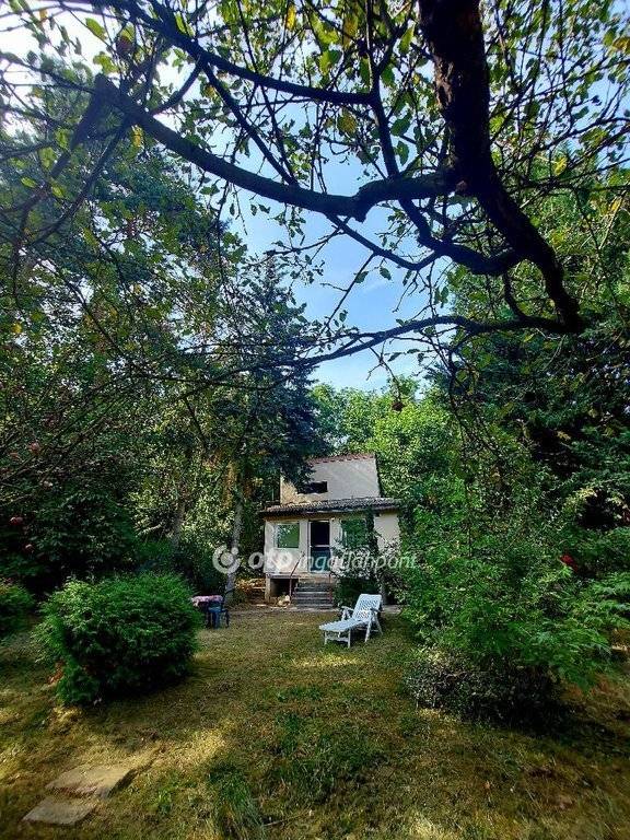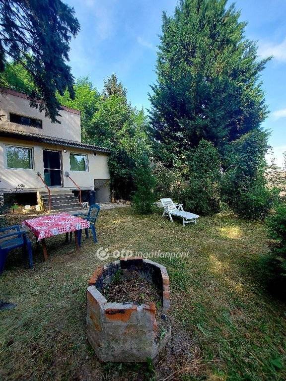 Gáz nincs a telken belül. Gyümölcsfákkal, málnával, fügefával telepített az udvar, szalonnasütő van a ház előtti kertrészen.