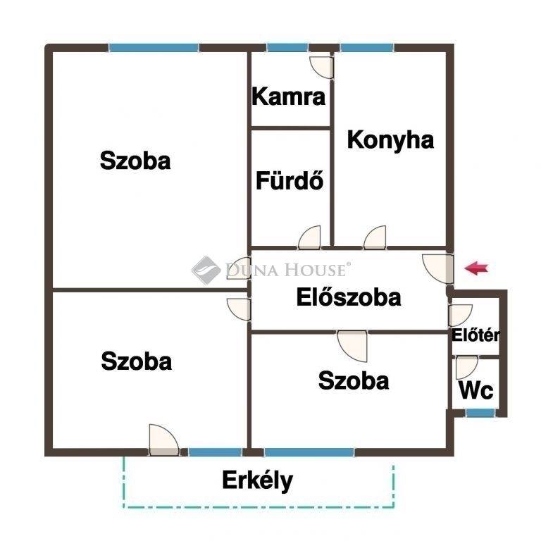 74 négyzetméteres tégla lakás jó állapotban, erkéllyel