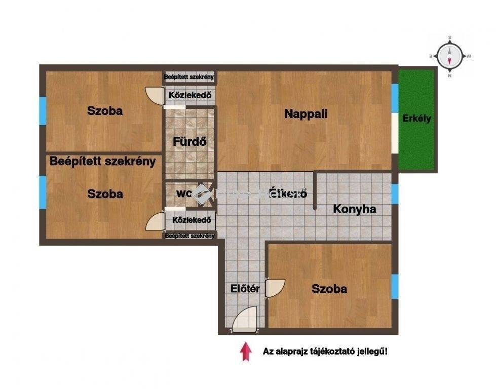A lakás rendkívül jó elosztású: előszoba, nappali + 3 félszoba, konyha, étkező, közlekedők, fürdőszoba és külön WC szolgálja a kényelmes mindennapokat.