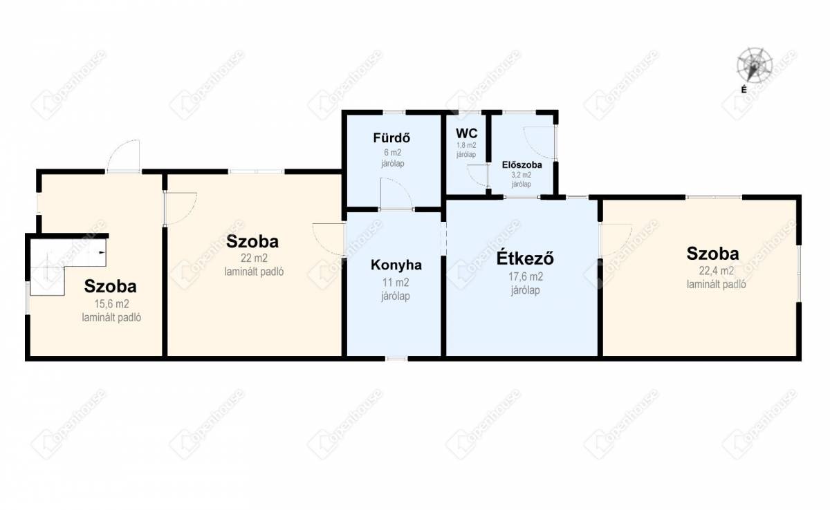 - a szobákat lamináltpadló borítja, a többi helyiséget pedig járólap