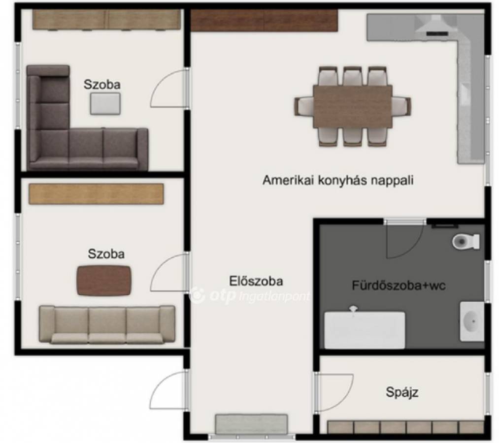 -a kiváló elosztású világos beltérben : előszoba , amerikai konykás nappali , 2 szoba , spájz , fürdőszoba+wc került kialakításra.