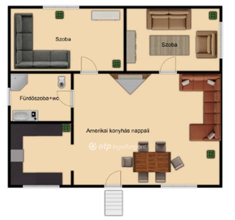 A világos beltérben : 2 szoba , amerikai konyhás nappali , fürdőszoba+wc került kialakításra.