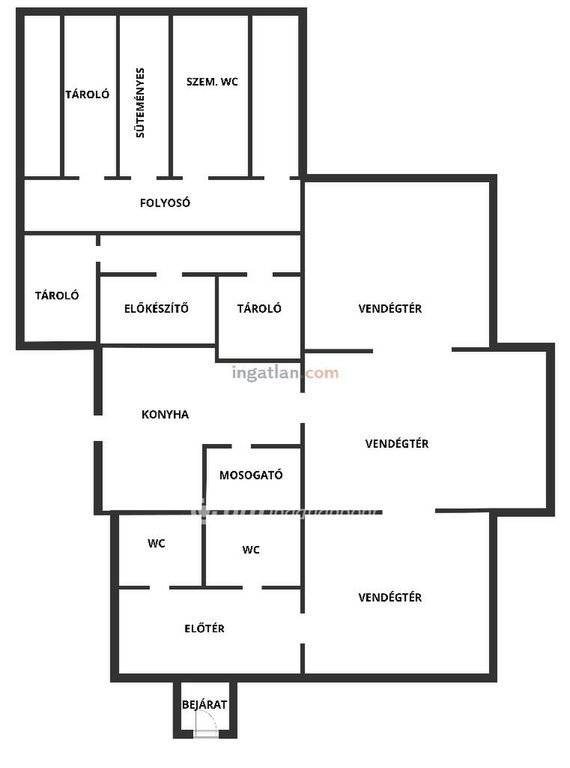 -160 m2-es, osztott, tágas és világos vendégtér - 42 m2-es felszerelt konyha - több mint 240 m2 előkészítő és tároló terület - külön, légkondicionált süteményes helyiség - ipari áram az épületben.