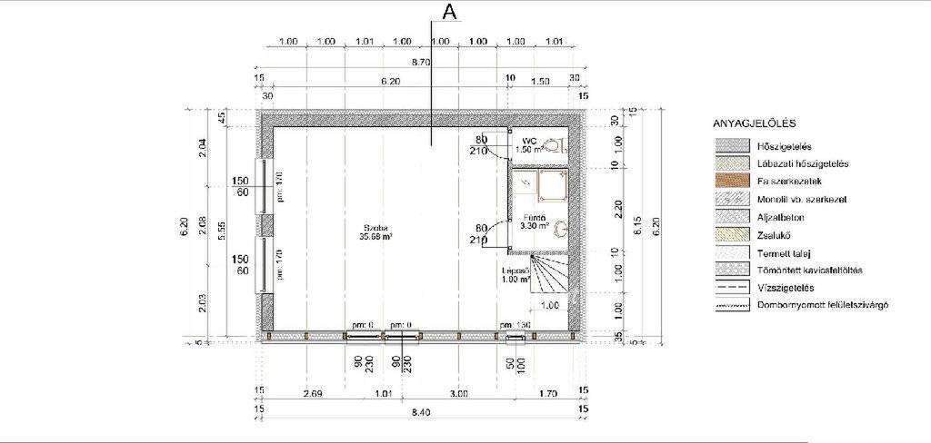 Pinceszint / Alapszint (42 m² + 32 m² terasz)