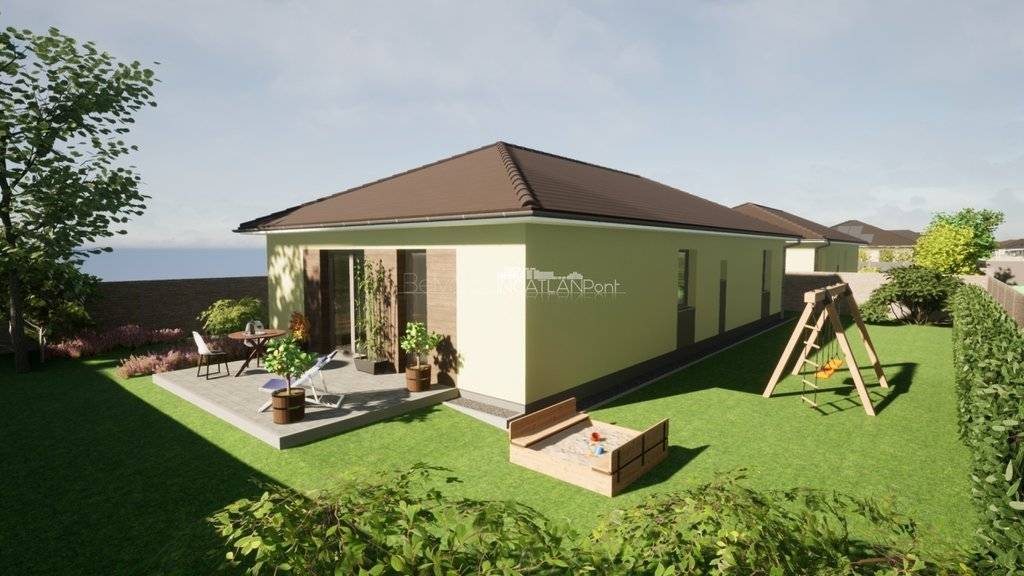- 5m3 csapadékgyűjtőbe lesz bekötve a ház esővize szikkasztóval ellátva, ami kiválóan alkalmas a növényzet öntözésére. Így nem kell kutat fúrni és nem borul fel a terület vízháztartása. Kerti csap is kialakításra kerül.