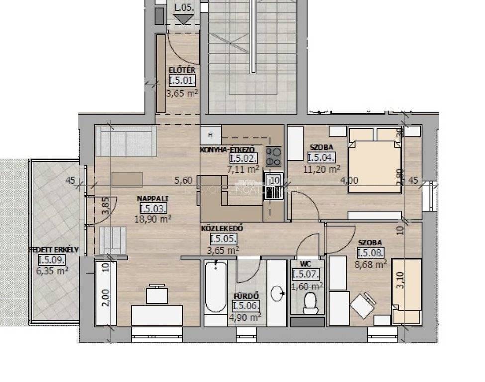 Az ingatlan nappali,- amerikai konyha, két szoba, külön fürdő,-WC helyiségekkel rendelkezik.