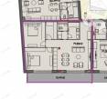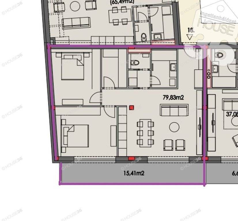 Az épület II. emeletén, 79,83 m2 lakóterű, nappali + 2 szobás lakás, 15,41 m2 erkéllyel megvásárolható.