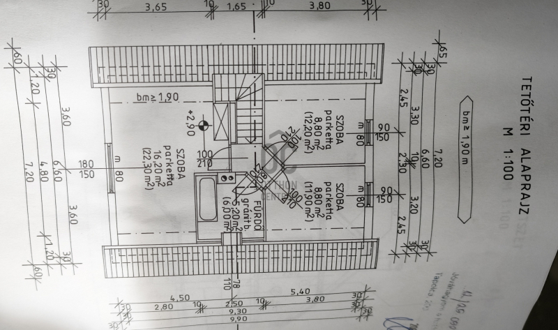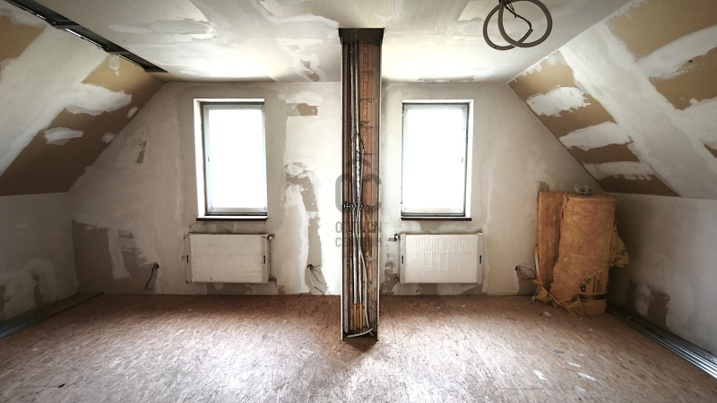 A tetőtérben 2 nagyszoba és egy fürdőszoba került kialakításra.