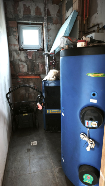 A víz, szennyvíz és villanyhálózat kész, itt a szaniterek valamint a kapcsolók hiányoznak. Az épület fűtésére központi vegyes tüzelésű kazán áll rendelkezésre, radiátorok felszerelve, vezetékek a falba és a padlóba elvezetve.