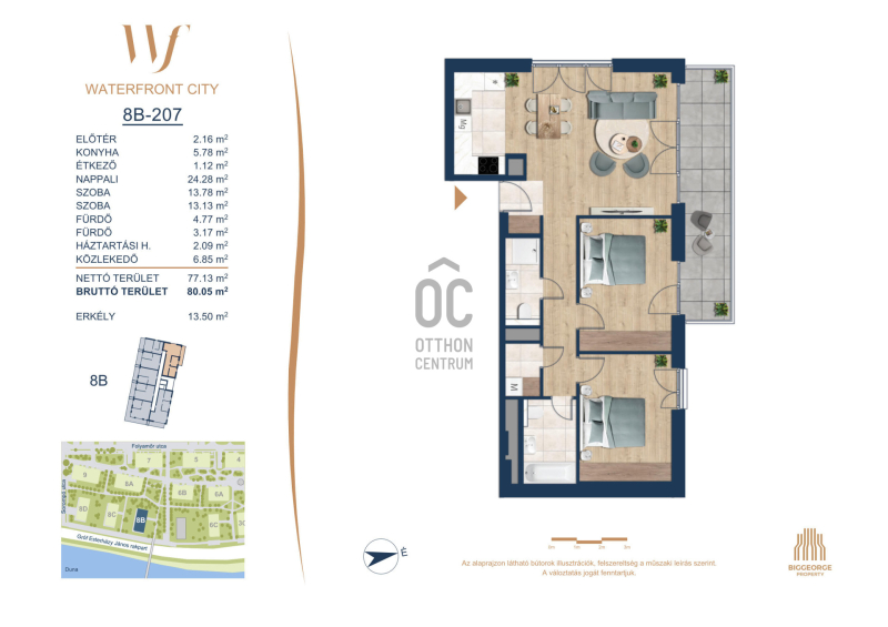 A Waterfront City egy új, modern városnegyed a 3. kerületben, ahol a természet közelsége és a városi kényelem tökéletes egyensúlyban van. A Duna-part közvetlen szomszédságában elhelyezkedő fejlesztés különleges atmoszférát kínál: a sétányt új épületek határolják, üzletekkel, kávézókkal és szolgáltatásokkal, amelyek élhető közösségi teret teremtenek.