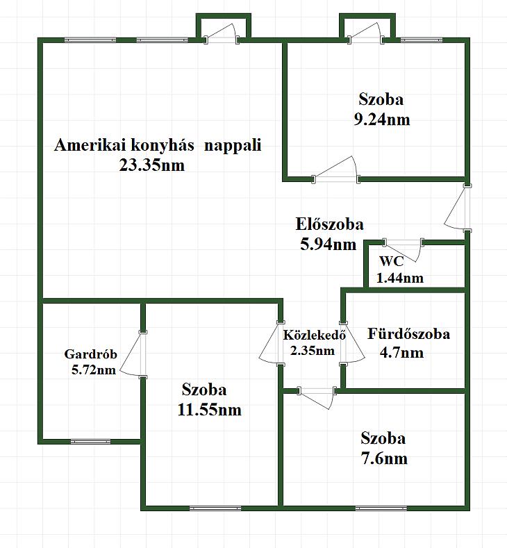 Az ingatlan 3 szobából és egy amerikai konyhás nappaliból áll, továbbá egy kis előtér is tartozik hozzá. A nappalihoz és az egyik szobához franciaerkély, egy másik szobához pedig külön gardróbszoba kapcsolódik. A fürdőszoba és a WC külön helyiségben található, ami kényelmes megoldást biztosít a mindennapokban.
