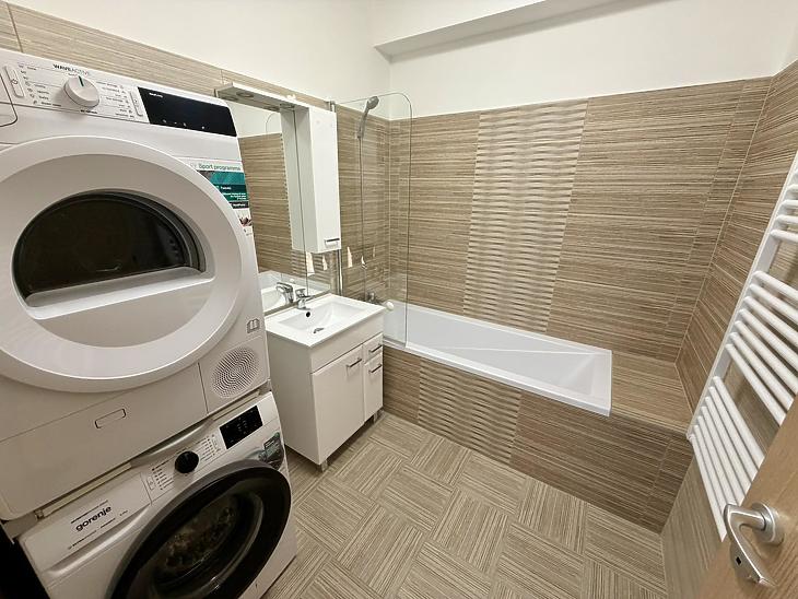 A lakás félig bútorozott, teljesen gépesített, így azonnal költözhető. Igény esetén a tulajdonos tud biztosítani teljes bútorzatot. A konyhában és a fürdőszobában rendelkezésre áll: