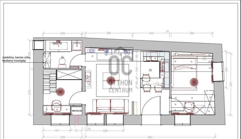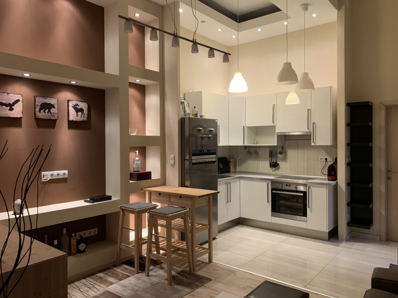 A lakás 2014-ben teljes körű felújításon esett át. Az amerikai konyhás nappaliból két külön nyíló szoba érhető el, ami ebben a méretkategóriában ritkaság. Az egyik szoba galériázott.