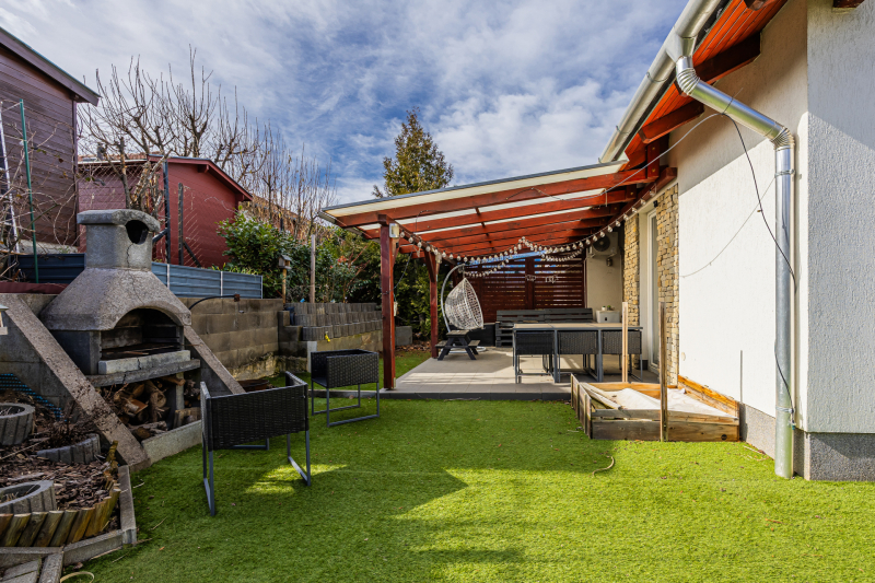 + udvari beálló, tároló, terasz, beépített csúszda, hinta, grillező, bográcsozó hely...
