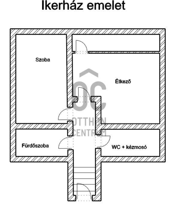 Az ikerház emeletén lévő lakrész nettó 40 m2, beépített tetőtér: