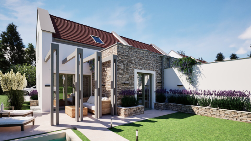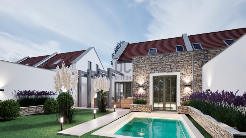 A kivitelezés további részeként kérhető a telekterületre egy 3x5 méteres saját medence, ebben az esetben az ingatlanra vonatkozó vételár 128 millió Ft-ra módosul.