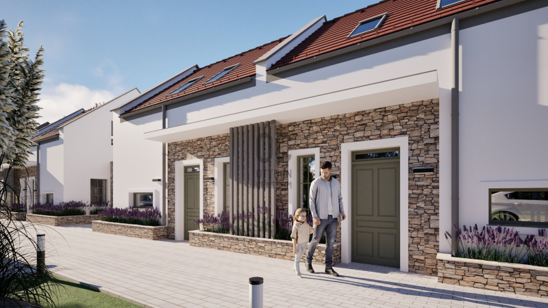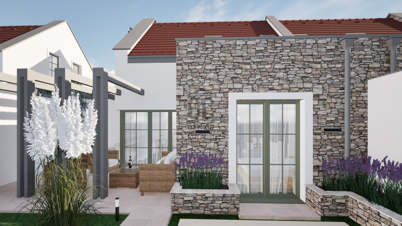 A burkolatok, szaniterek és beltéri nyílászárók választhatók, így a belső kialakítás teljes mértékben az új tulajdonos igényei szerint alakítható – legyen szó elegáns, modern vagy természetközeli enteriőrről.
