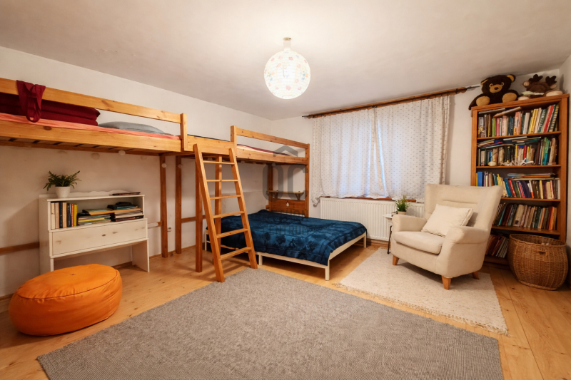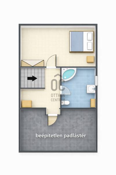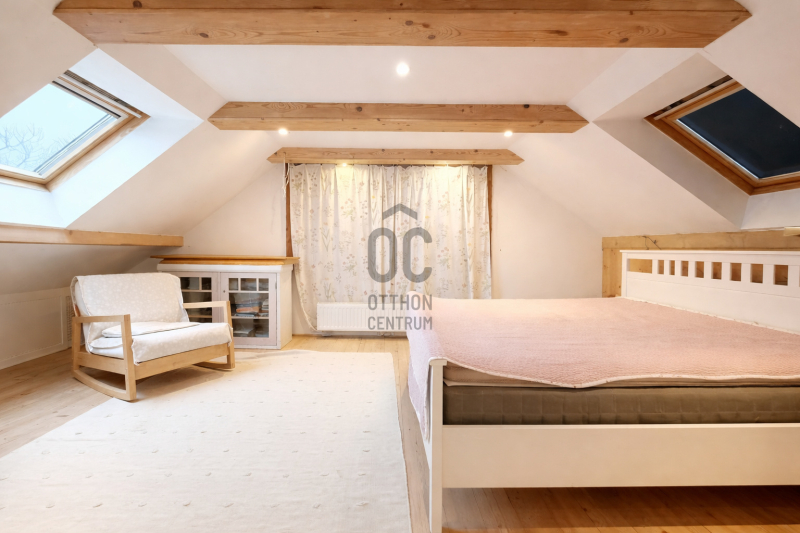 Emelet: hálószoba, fürdőszoba-WC, valamint külön megközelíthető, beépíthető padlástér.