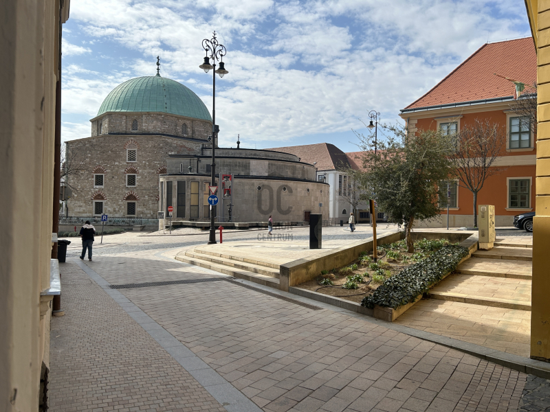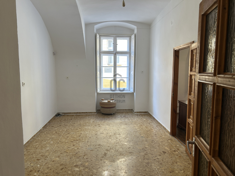 Pécsett a Széchenyi térre néző belvárosi 63 m2-es kétszobás földszinti lakás amit eddig irodaként használtak, Airbnb-re is ideális a város központjában műemlék épületben található.