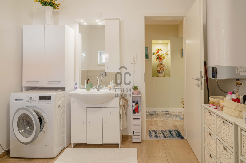 - Praktikus részletek: A fürdőszoba mellett egy különálló vendégmosdó is helyet kapott, ami nagyban növeli a napi kényelmet.