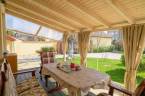 - Toszkán hangulatú terasz: A nappaliból kilépve egy mediterrán stílusú terasz várja, amely a reggeli kávézások és az esti baráti beszélgetések kedvenc helyszíne lesz.
