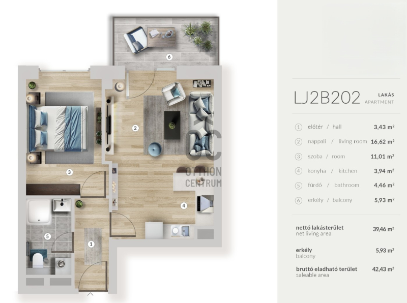 A 6. emeleti penthouse lakásokból pazar kilátás nyílik a budai hegyekre, a kényelmet pedig biztosítja, hogy a nagy teraszon jacuzzi-nak kialakítható hely is található.